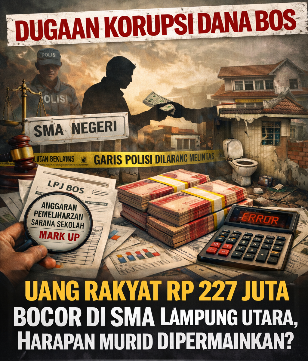 DANA BOS DIDUGA DIBANCAR OKNUM, POLA PEMELIHARAAN SMA NEGERI DI LAMPUNG UTARA TERKUAK Selisih Anggaran Capai Rp 227 Juta, Publik Desak APH Bongkar Aliran Dana