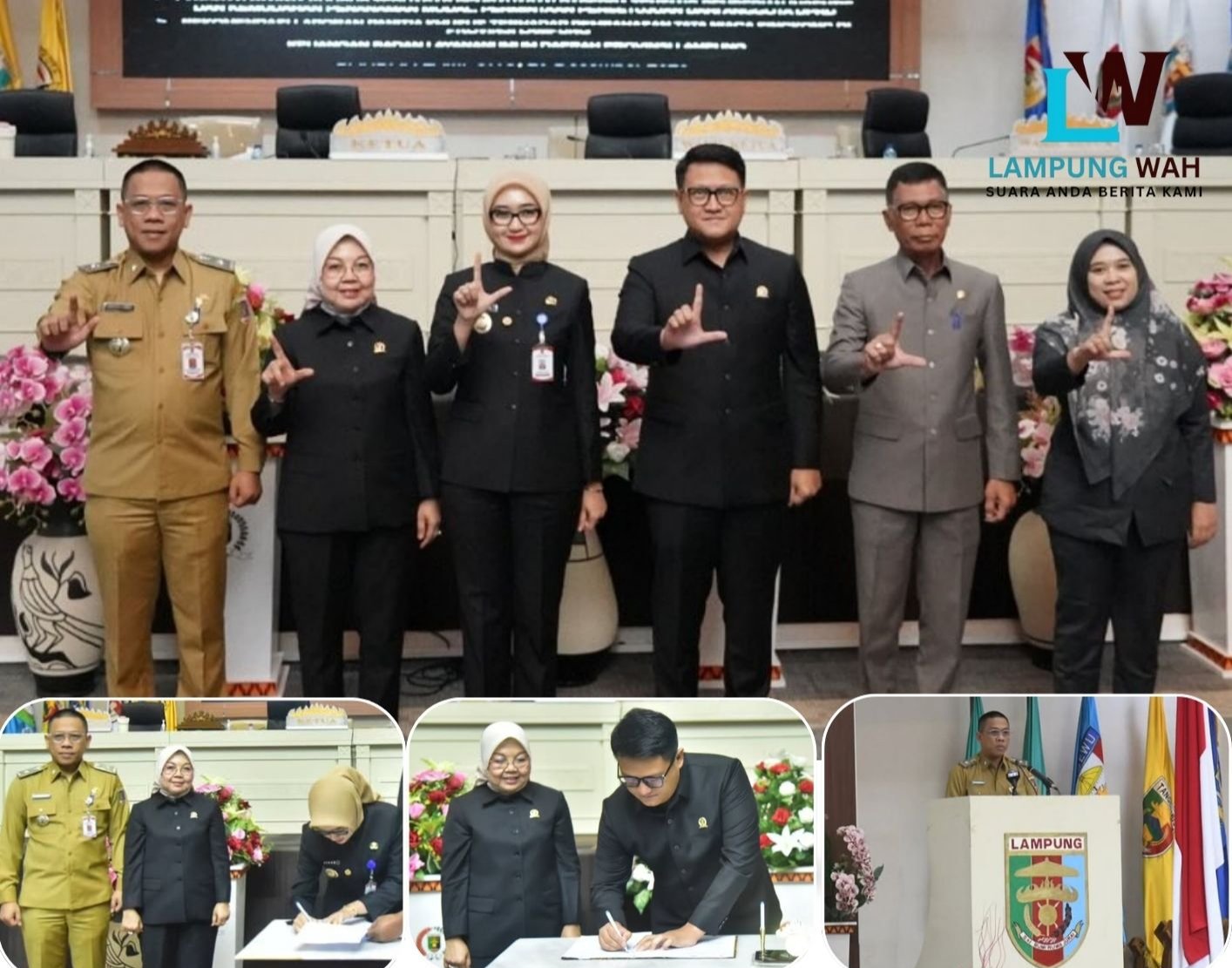 Kedua Raperda tersebut disertai laporan Panitia Khusus, permintaan persetujuan anggota, pembacaan konsep keputusan DPRD, dan sambutan Gubernur Lampung.