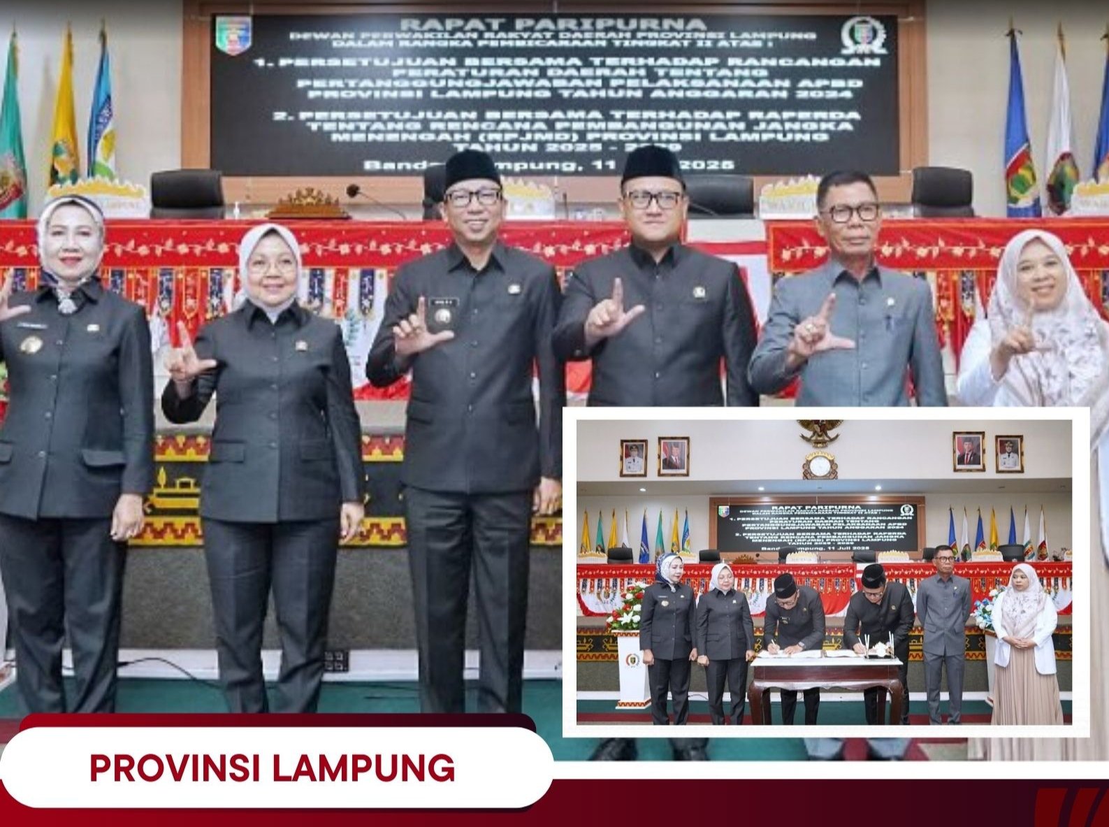 Gubernur Lampung dan Ketua DPRD Provinsi Lampung Resmi Menandatangani Raperda Pertanggungjawaban Pelaksanaan APBD 2024 dan Menyepakati RPJMD Provinsi Lampung 2025 –2029