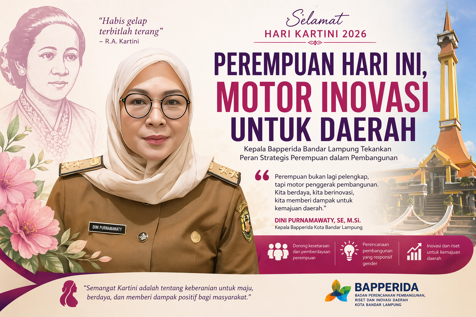 Bandar Lampung, Lampungwah — Momentum Hari Kartini 2026 dimanfaatkan Kepala Badan Perencanaan Pembangunan, Riset dan Inovasi Daerah (Bapperida) Kota Bandar Lampung, Dini Purnamawaty, SE, M.Si., untuk menegaskan peran strategis perempuan dalam pembangunan daerah.