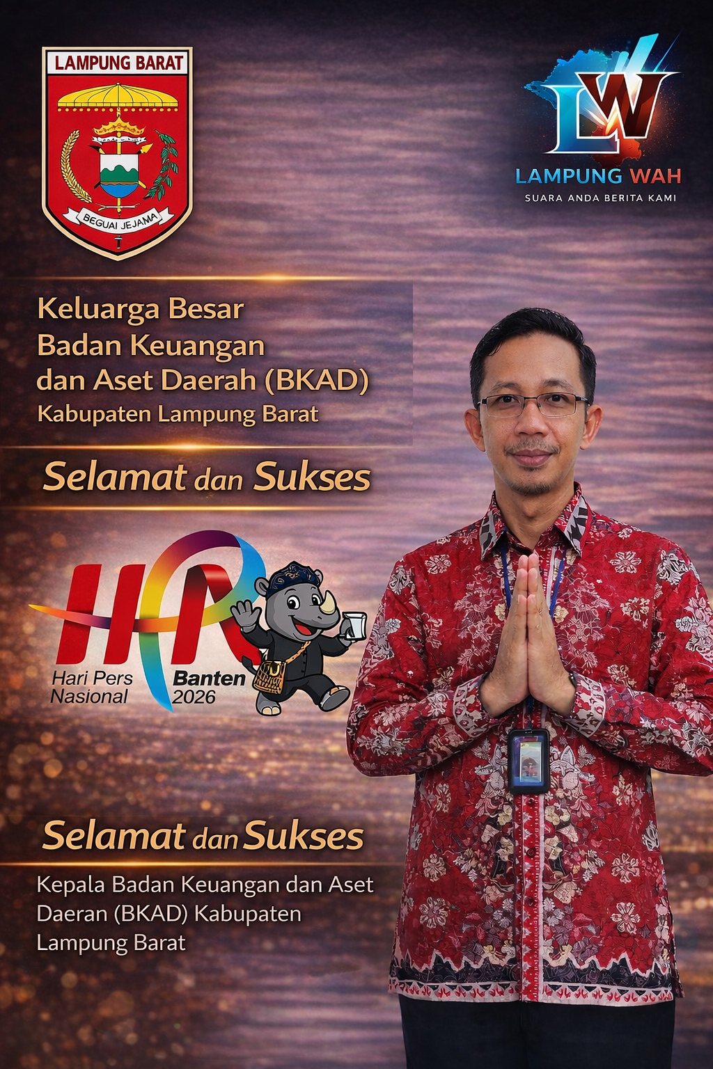 Lampung Barat lintaspena.online – Dalam rangka memperingati Hari Pers Nasional (HPN) Tahun 2026 yang dipusatkan di Provinsi Banten, Keluarga Besar Badan Keuangan dan Aset Daerah (BKAD) Kabupaten Lampung Barat menyampaikan ucapan Selamat Hari Pers Nasional 2026 kepada seluruh insan pers di Indonesia.