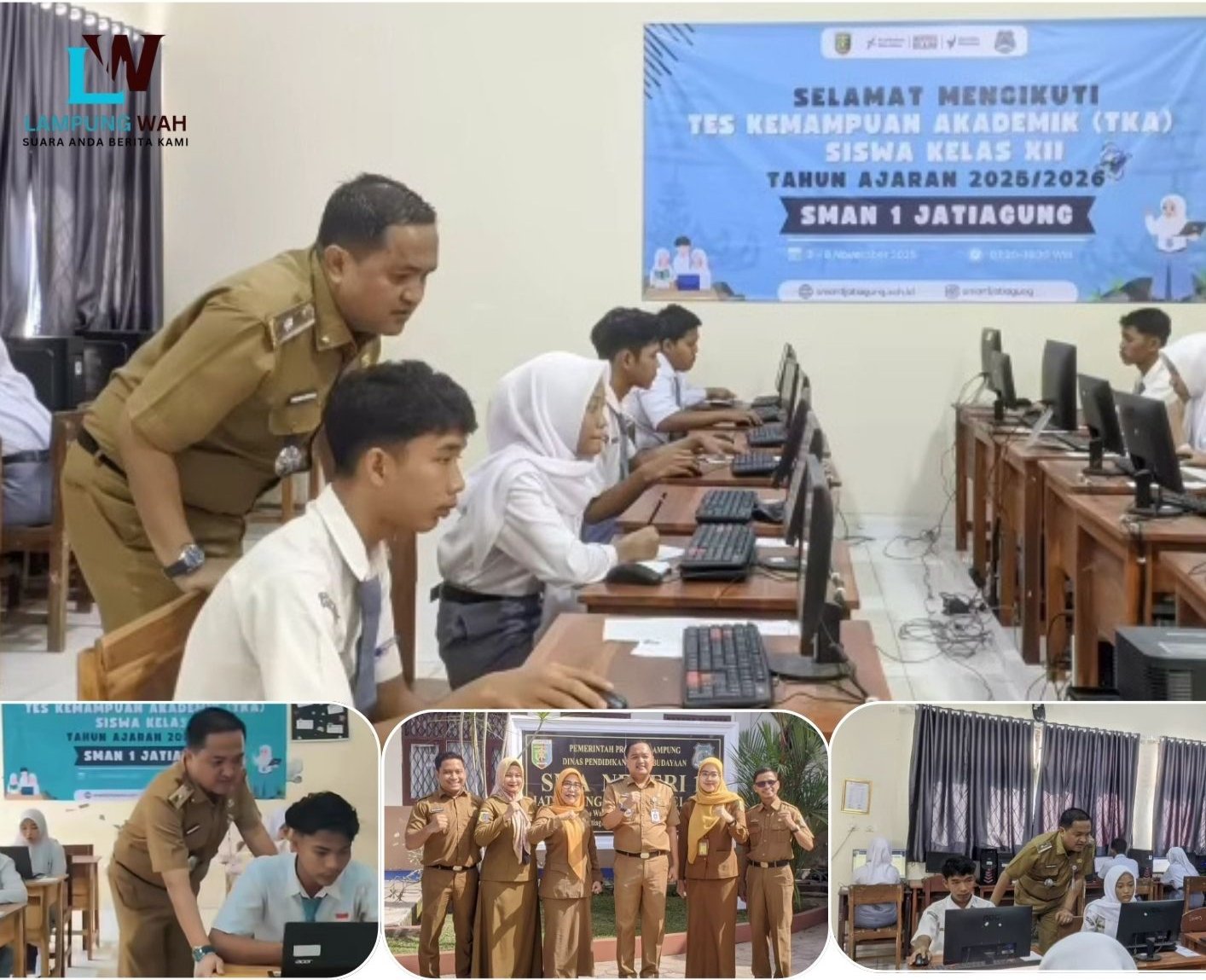 Lampung Selatan, lintaspena.online – Kepala Dinas Pendidikan dan Kebudayaan (Disdikbud) Provinsi Lampung, Thomas Amirico, S.STP, M.H., meninjau langsung pelaksanaan Tes Kemampuan Akademik (TKA) berbasis komputer bagi siswa kelas XII di SMAN 1 Jatiagung, Senin (03/11/2025).