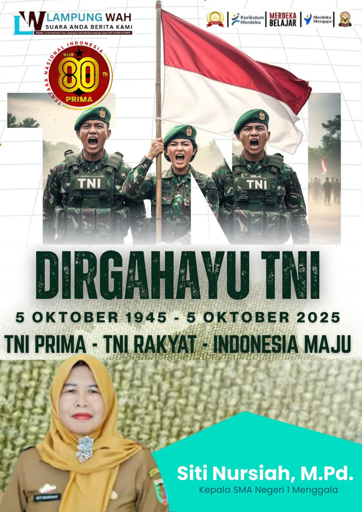 Kepala SMA Negeri 1 Menggala Mengucapkan “Dirgahayu Tentara Nasional Indonesia yang ke-80.Tahun 2025” Terima Kasih Atas Dedikasi dan Pengabdian Dalam Menjaga Indonesia Selama 80 Tahun