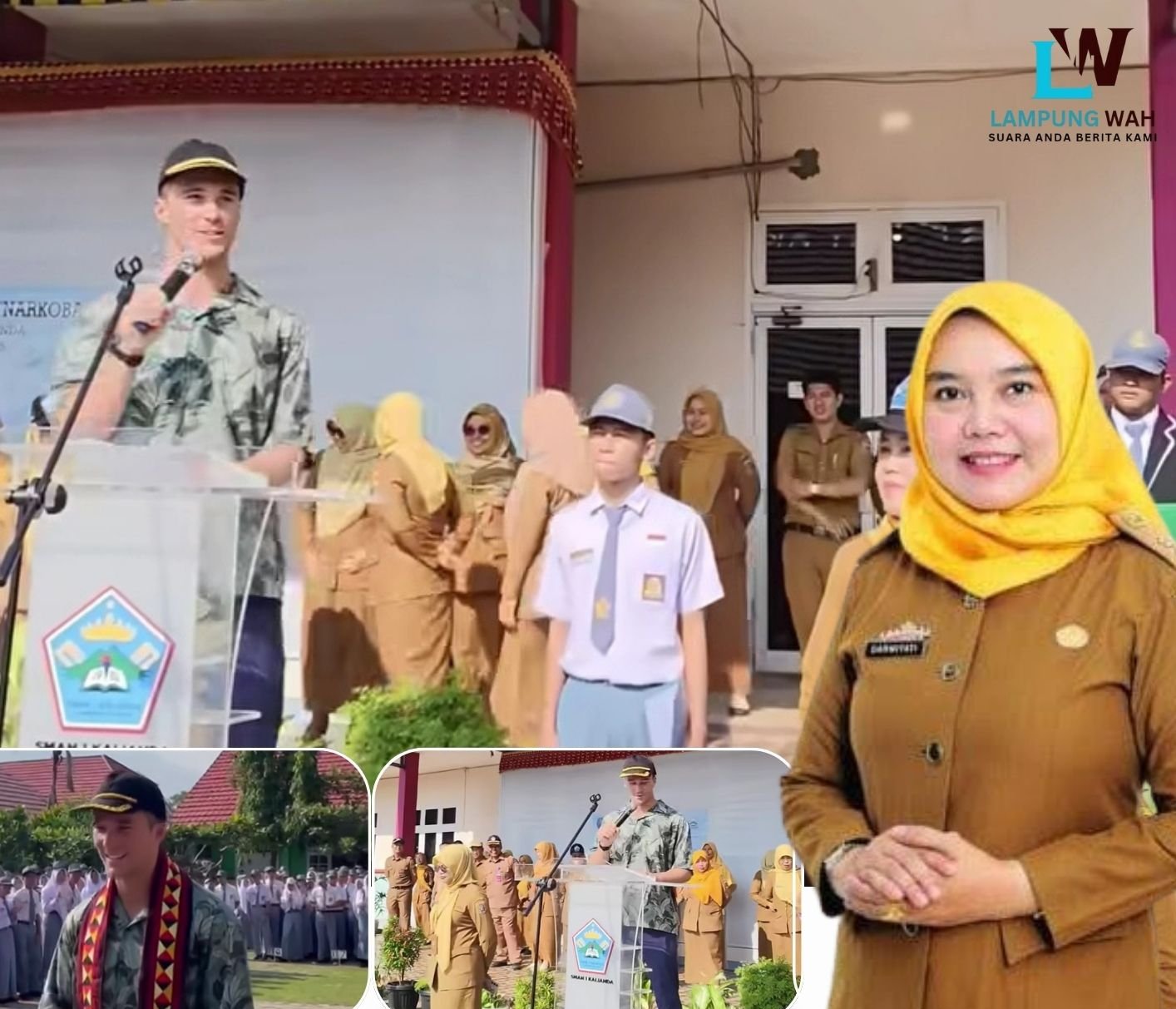 Kalianda, lintaspena.online — Kepala SMAN 1 Kalianda, Darmiyati, S.Pd., M.Pd., secara resmi menerima kedatangan Charles Clydesdale Cushman, English Teaching Assistant (ETA) dari AMINEF yang berasal dari Amerika Serikat. Acara penyambutan berlangsung di lingkungan SMAN 1 Kalianda, Lampung Selatan. (6 Oktober 2025)