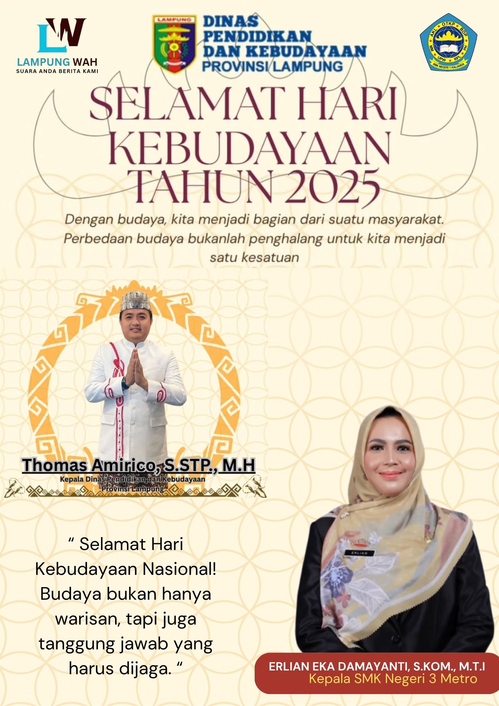 Kepala SMK Negeri 3 Metro Ucapkan Selamat Hari Kebudayaan Nasional 2025