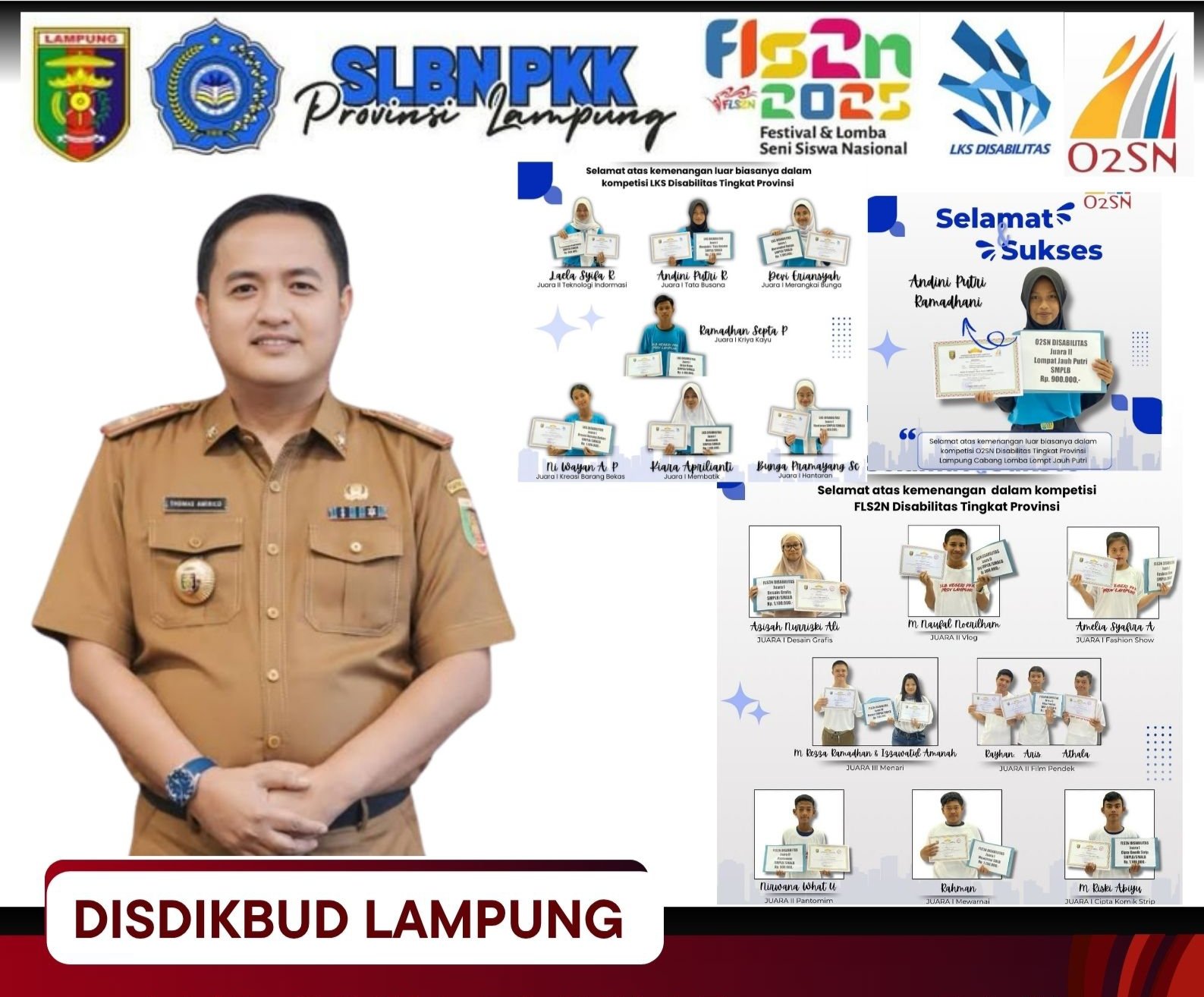 – Kompetisi 02SN disabilitas tingkat provinsi Lampung : 1.Andini Putri Ramadhani juara dua lompat jauh puti.