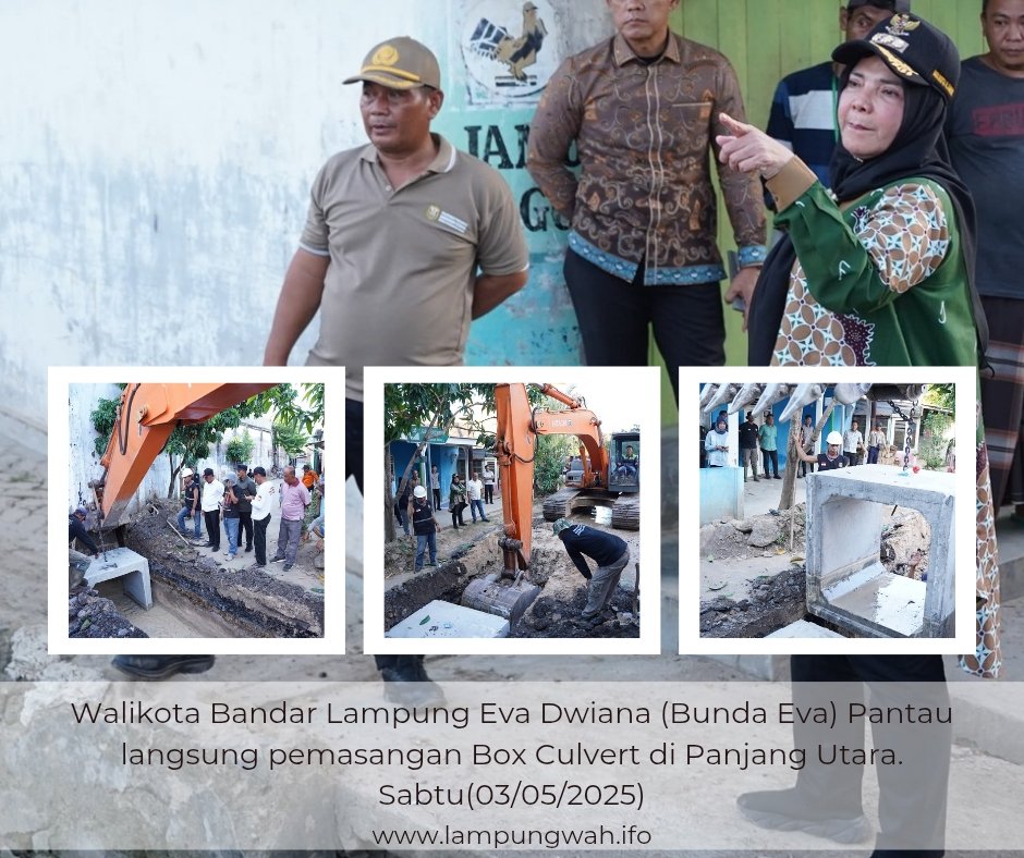 “Sudah mulai dipasang, kita buat saluran air baru menggunakan Box Culvert dan saluran air yang lama kita bersihkan”, jelas Walikota Bandar Lampung Eva Dwiana, Sabtu 3 Mei 2025.