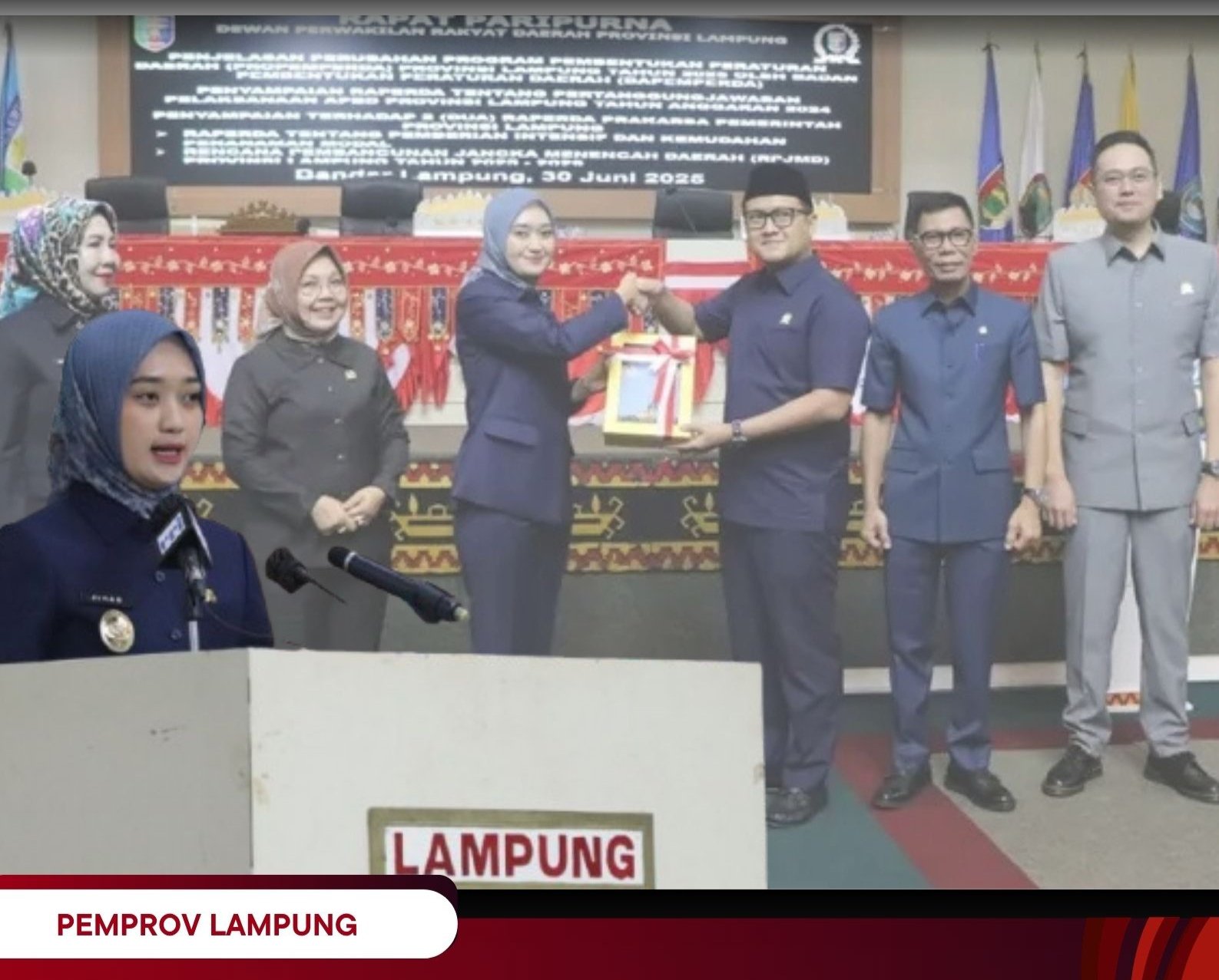 Rapat Paripurna DPRD Provinsi Lampung dilaksanakan dalam rangka Penjelasan Pembentukan Perubahan Program Peraturan Daerah (PROPEMPERDA) Provinsi Lampung Tahun 2025 oleh Badan Pembentukan Peraturan Daerah (BAPEMPERDA), Pembicaraan Tingkat I Penyampaian Raperda tentang Pertanggungjawaban Pelaksanaan APBD Provinsi Lampung Tahun Anggaran 2024 serta Pembicaraan Tingkat I Penyampaian terhadap 2 (Dua) Raperda Prakarsa Pemerintah Provinsi Lampung.