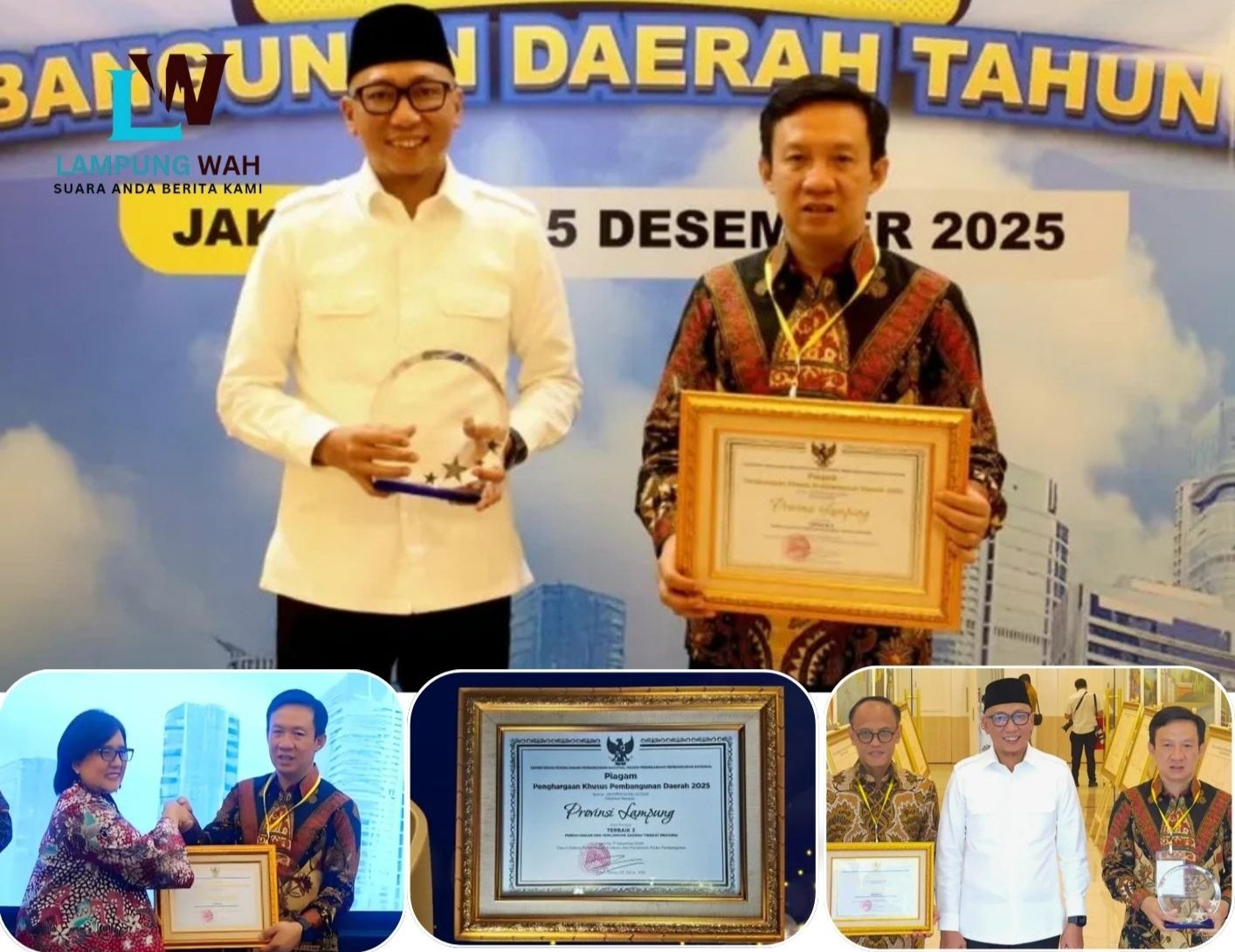 Penghargaan bergengsi ini diterima oleh Sekretaris Daerah Provinsi Lampung, Marindo Kurniawan, mewakili Gubernur Lampung Rahmat Mirzani Djausal, dalam acara Knowledge Sharing Praktik Baik Pembangunan yang diselenggarakan di Kantor Kementerian PPN/Bappenas Republik Indonesia, Jakarta, pada Senin, 15 Desember 2025.