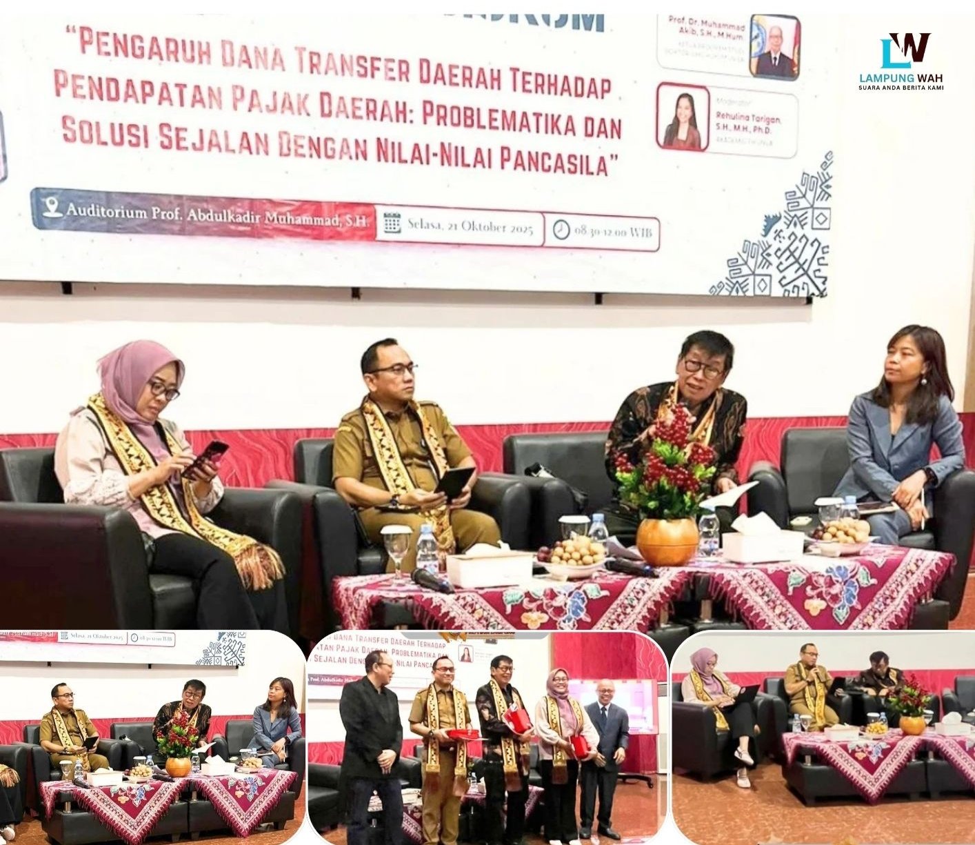 Seminar nasional tersebut mengangkat tema “Pengaruh Dana Transfer Daerah Terhadap Pendapatan Pajak Daerah; Problematika dan Solusi Sejalan Dengan Nilai-Nilai Pancasila.” Kegiatan ini membahas secara mendalam pengaruh dana transfer daerah terhadap optimalisasi pendapatan pajak daerah, serta merumuskan solusi kebijakan yang berlandaskan nilai-nilai Pancasila untuk memperkuat kemandirian fiskal daerah.