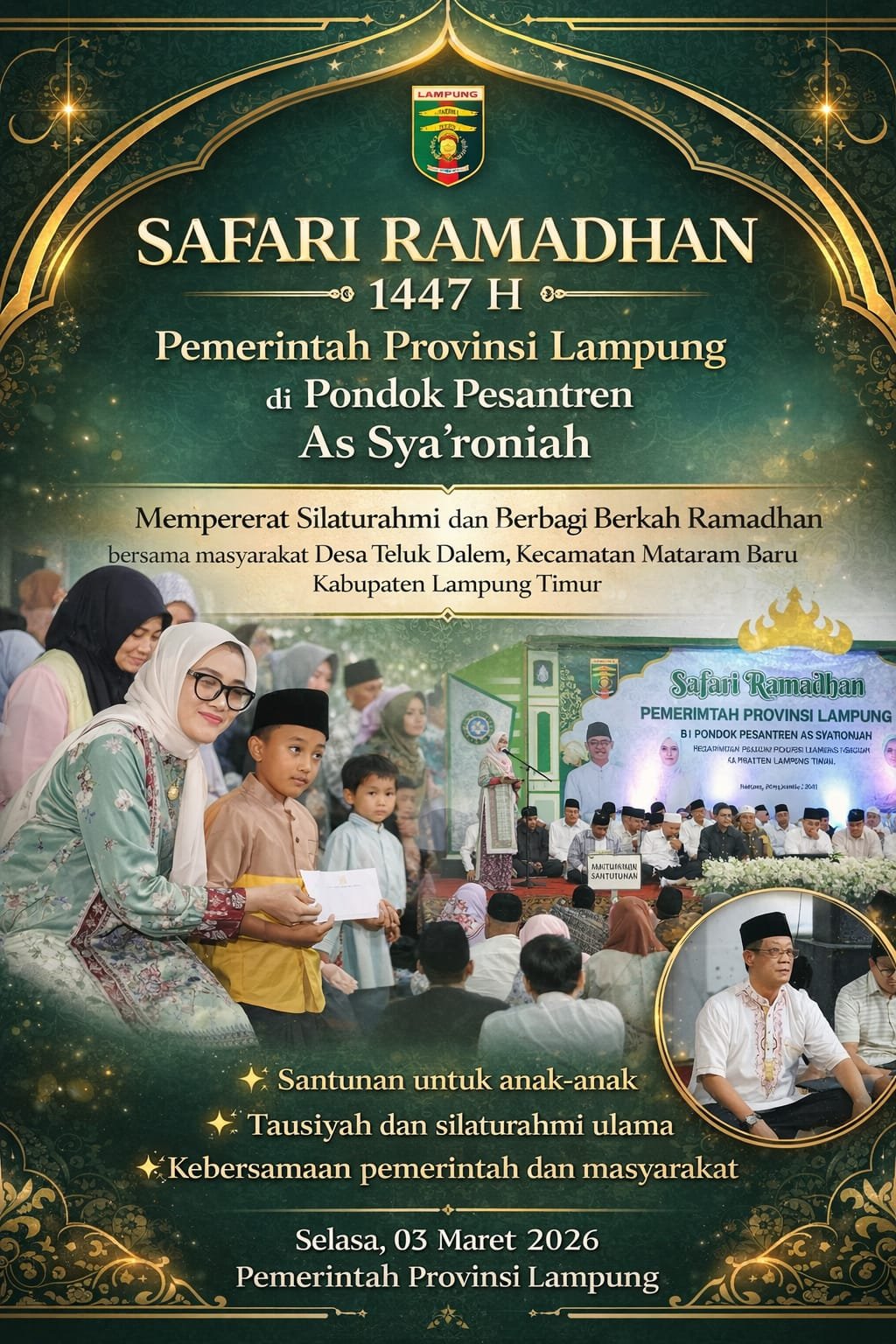 Safari Ramadhan ini menjadi bagian dari rangkaian kegiatan Pemerintah Provinsi Lampung untuk mempererat silaturahmi dengan masyarakat sekaligus menebar kepedulian sosial di bulan suci Ramadhan.