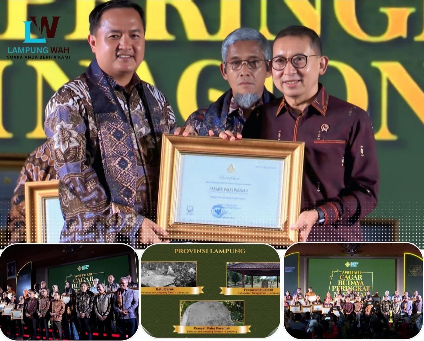 Jakarta, lintaspena.online — Pemerintah Provinsi Lampung kembali mencatat prestasi di tingkat nasional dalam bidang pelestarian sejarah dan kebudayaan. Tiga warisan budaya asal Lampung resmi ditetapkan sebagai Cagar Budaya Peringkat Nasional Tahun 2025 oleh Kementerian Kebudayaan Republik Indonesia.