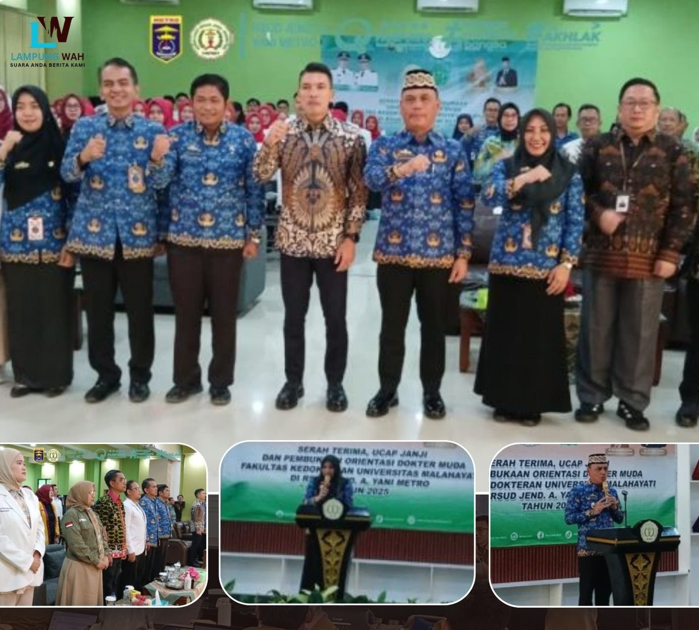Metro, lintaspena.online — Walikota Metro, Hi. Bambang Iman Santoso, S.Sos., M.Pd.I., secara resmi membuka Orientasi Mahasiswa Co-ass (Dokter Muda) Universitas Malahayati Bandar Lampung. Kegiatan ini berlangsung selama dua hari, 17–18 September 2025, dan diikuti oleh 57 mahasiswa Universitas Malahayati Bandar Lampung. Acara digelar di Aula Diklat RSUD Jenderal Ahmad Yani Metro pada Rabu (17/09/2025).